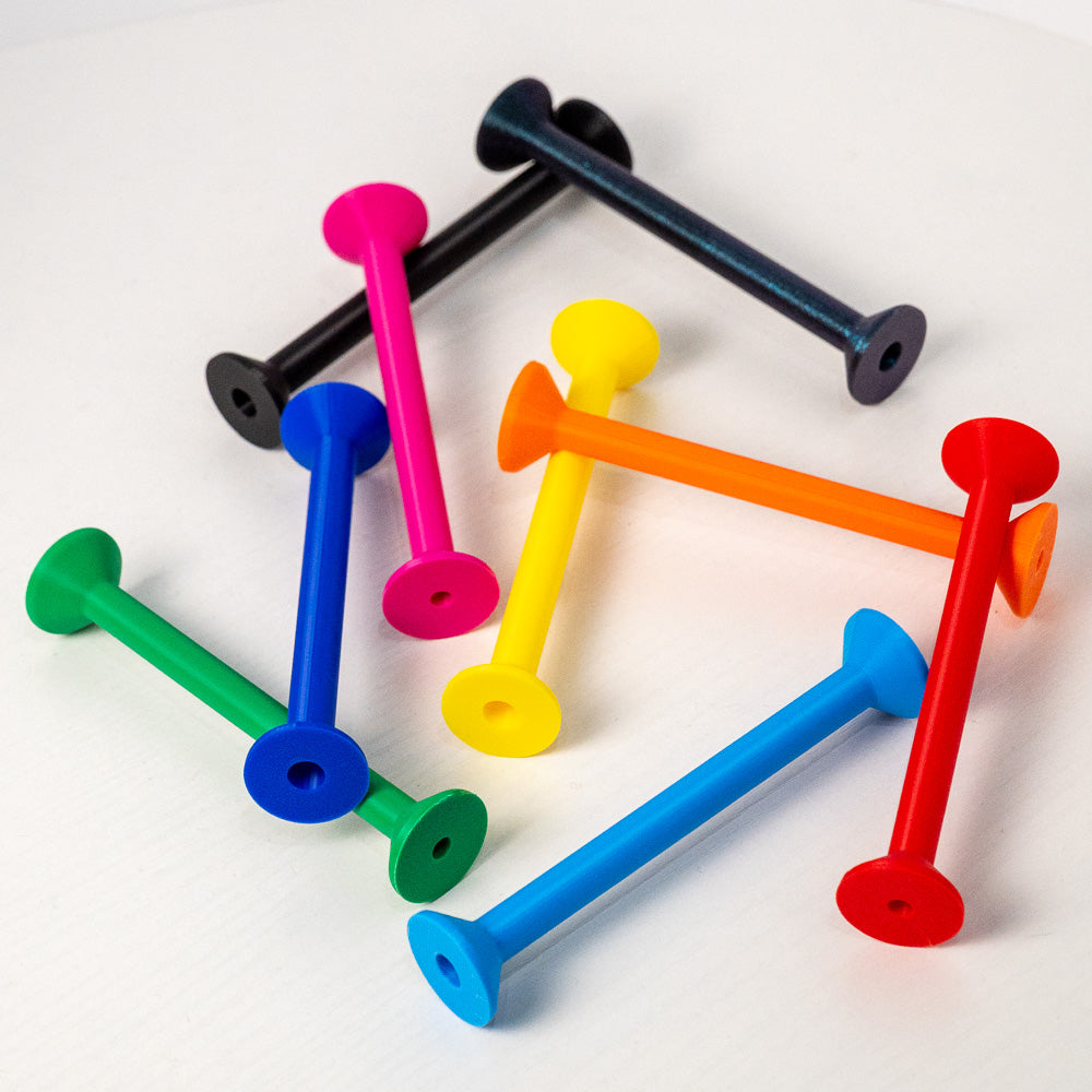 Custom Boat Shuttle bobbins match (or contrast!) your Warped by Weft Boat Shuttle. Use different colors to denote different fiber content, weight or project, or just for fun!